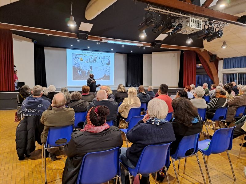 Nombreux étaient les paroissiens qui ont répondu présents à la soirée bol de riz. Cette année, c’est l’association « Tusaidie Kivu — Aidons le Kivu » qui a bénéficié des fonds collectés. Tusaidie-Kivu-Aidons le Kivu œuvre pour les familles victimes de la guerre qui sévit dans cette région de l’est de la République démocratique du Congo (RDC) depuis 30 ans. La raison : la richesse de son sous-sol (or, diamants, cuivre, coltan…) objet de toutes les convoitises. L’association finance la scolarité des enfants, notamment les orphelins. Elle participe aussi au paiement de la « mutuelle » : structure privée, car il n’y a pas de services publics sociaux en RDC. L’association soutient également des actions de sensibilisation à la préservation de l’environnement et pour une prise de conscience écologique.